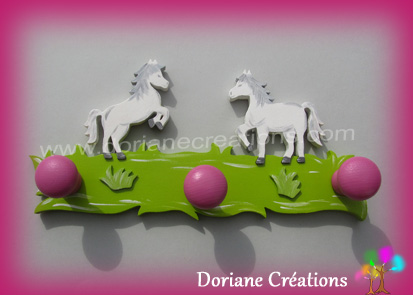 Porte manteau, porte robe de chambre. Décor 2 chevaux. Couleurs chevaux et patères personnalisables