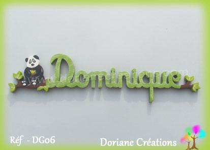 Prénom en bois Dominique vert vif uni, décor panda